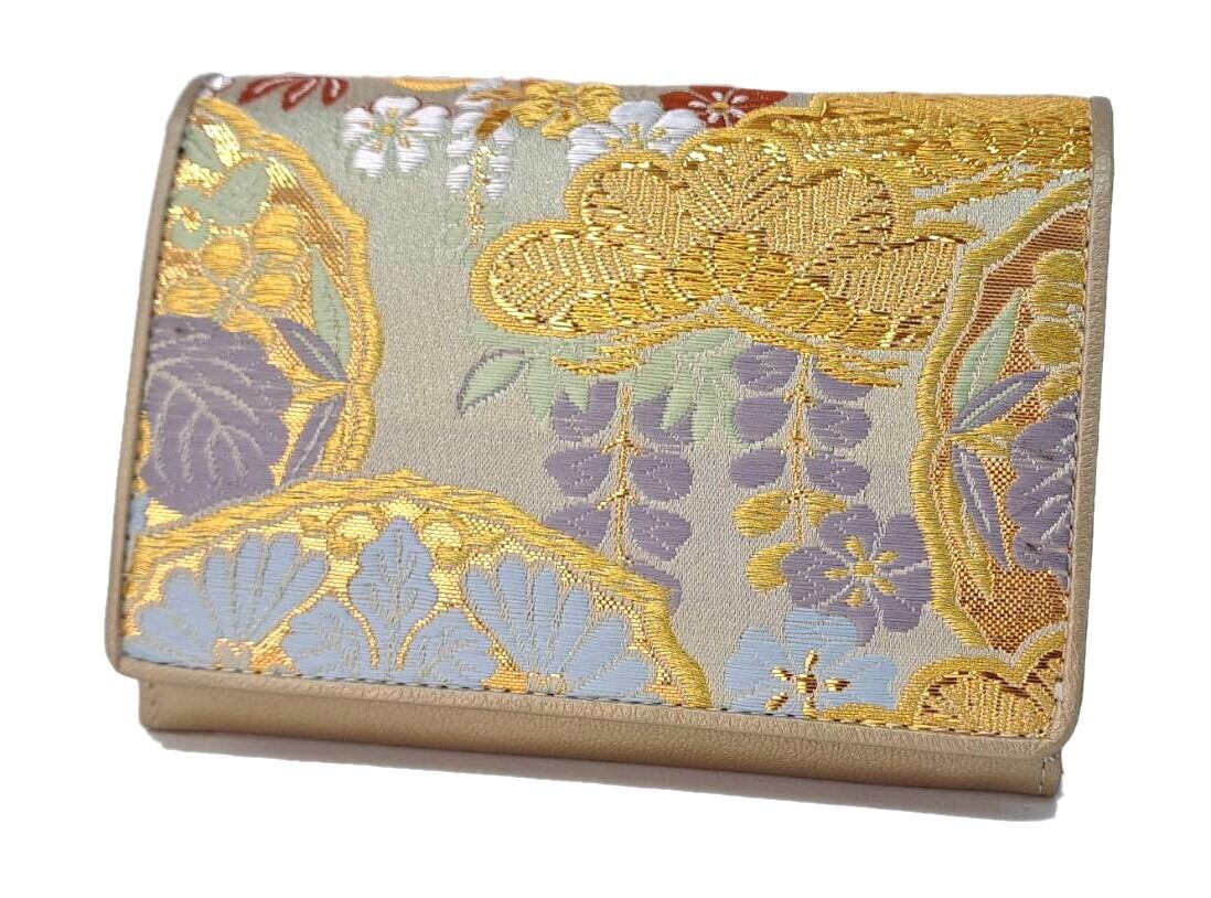 藤の花や菊、宝相華が配された金襴生地を使ったお財布です。