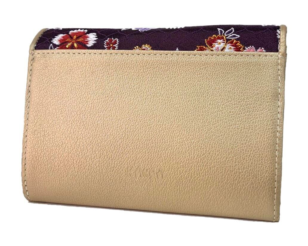 強い印象を与える金襴の柄とのバランスを整え、高級感を与え、和装だけでなく洋装でも使えるお財布に昇華しました。