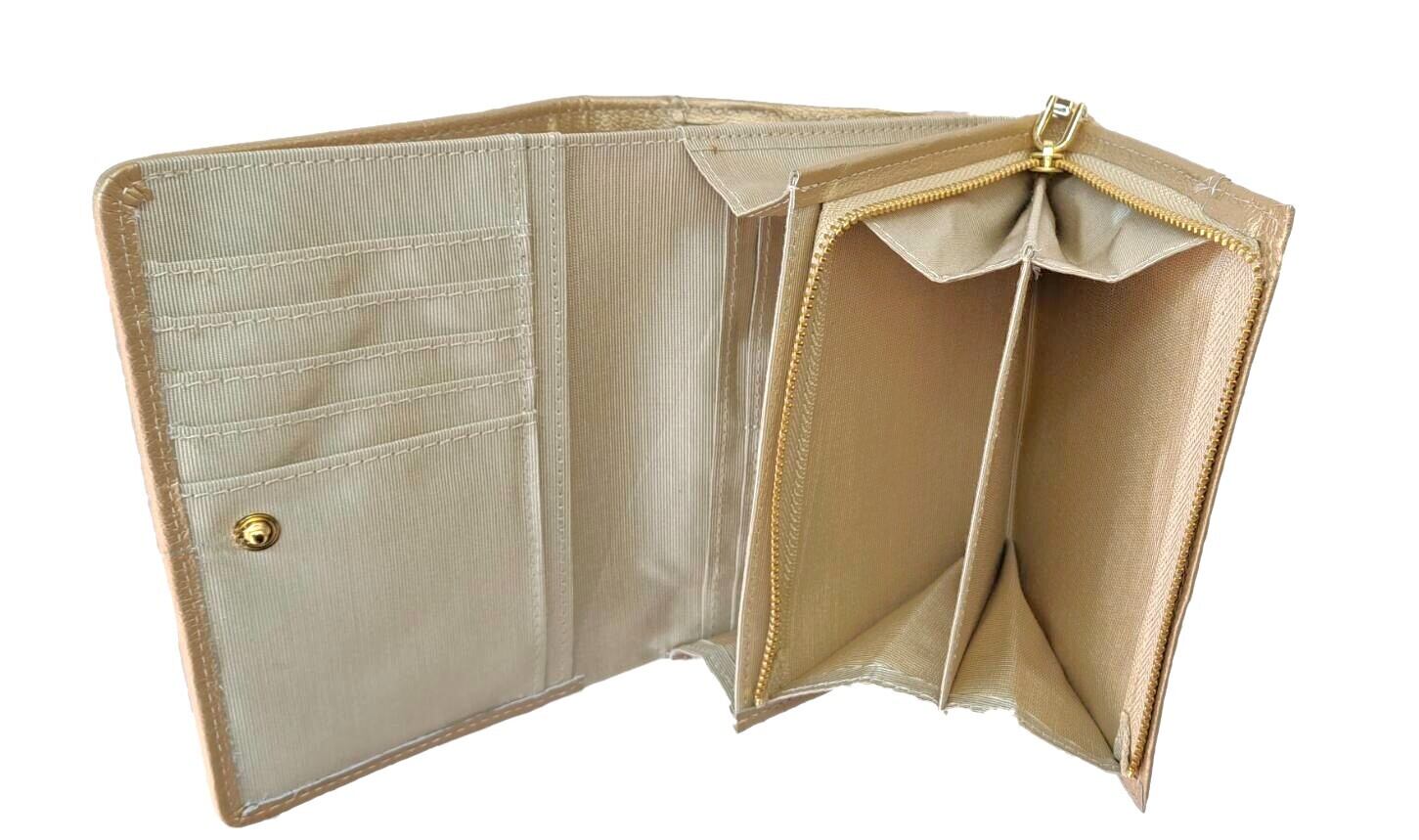 被せ蓋を開いた中部分にL字の小銭入れが付いているタイプの折財布です。