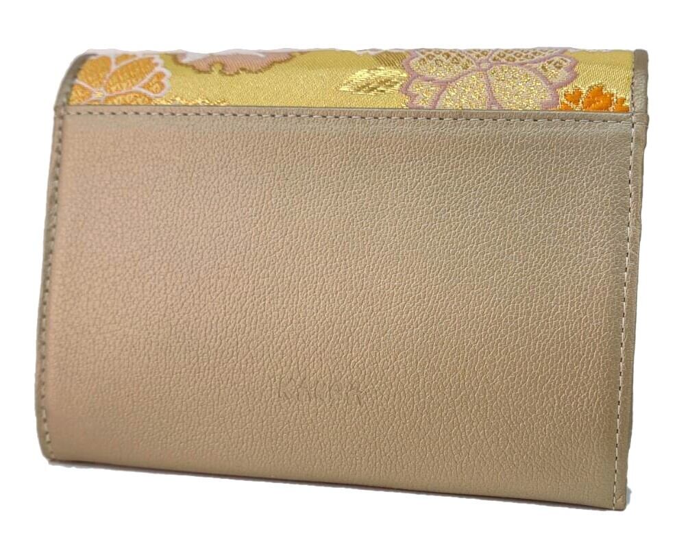 強い印象を与える金襴の柄とのバランスを整え、高級感を与え、和装だけでなく洋装でも使えるお財布に昇華しました。