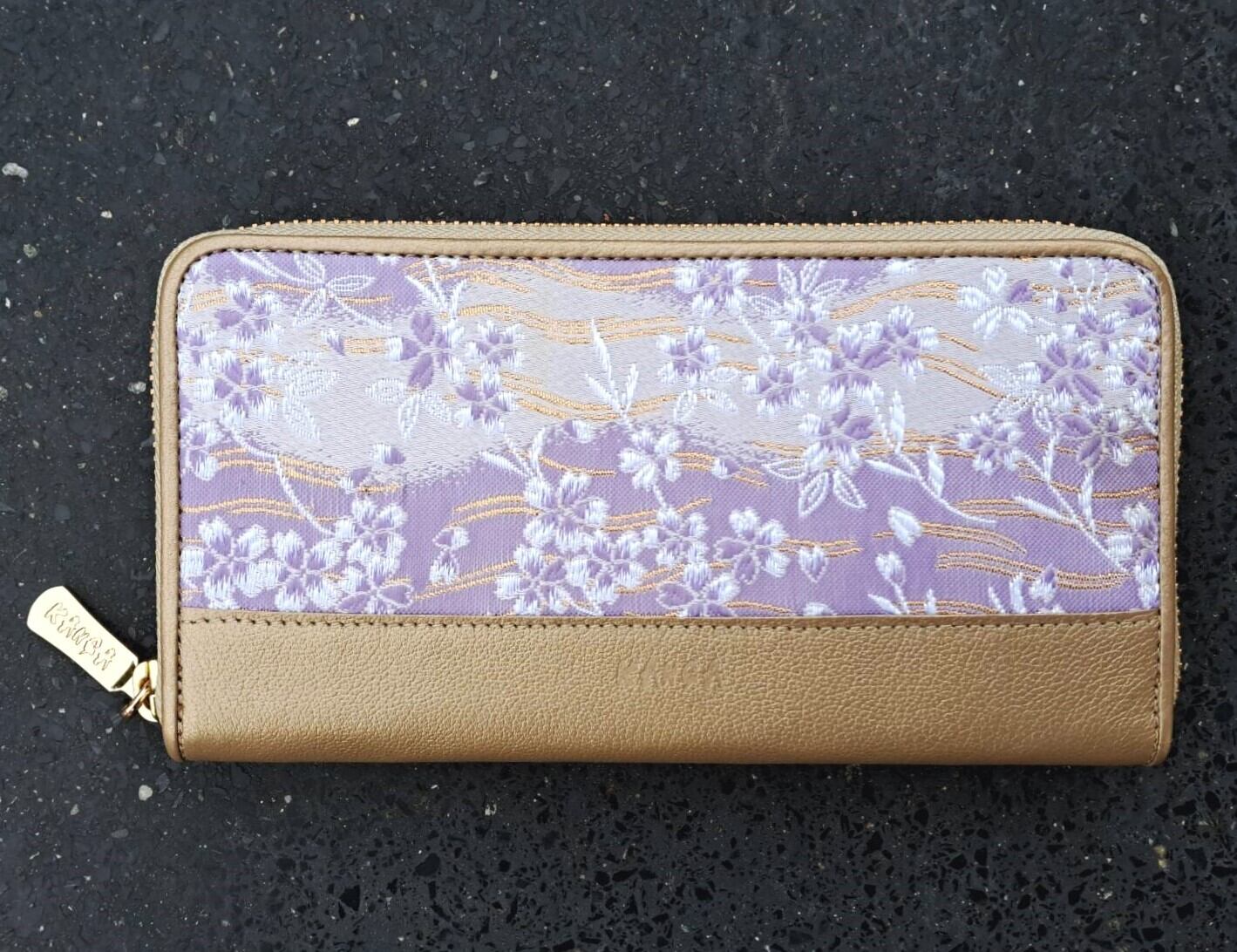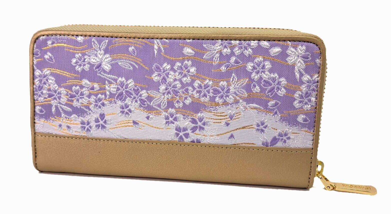 色とりどりの桜文様と流水文様を入れた金襴生地を使った縁起の良いお財布です。