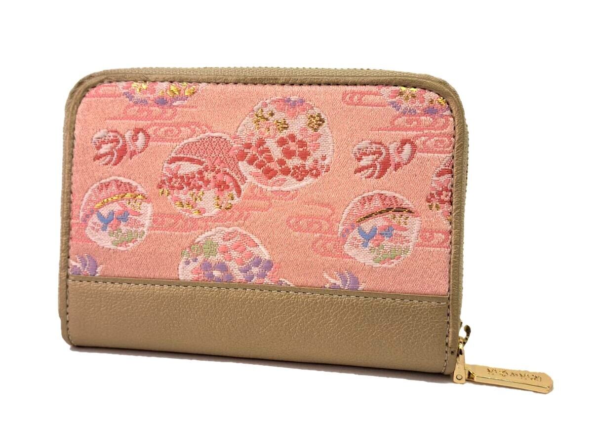 雪輪の中に桜、また兎がちりばめられた金襴生地を使った縁起の良いお財布です。