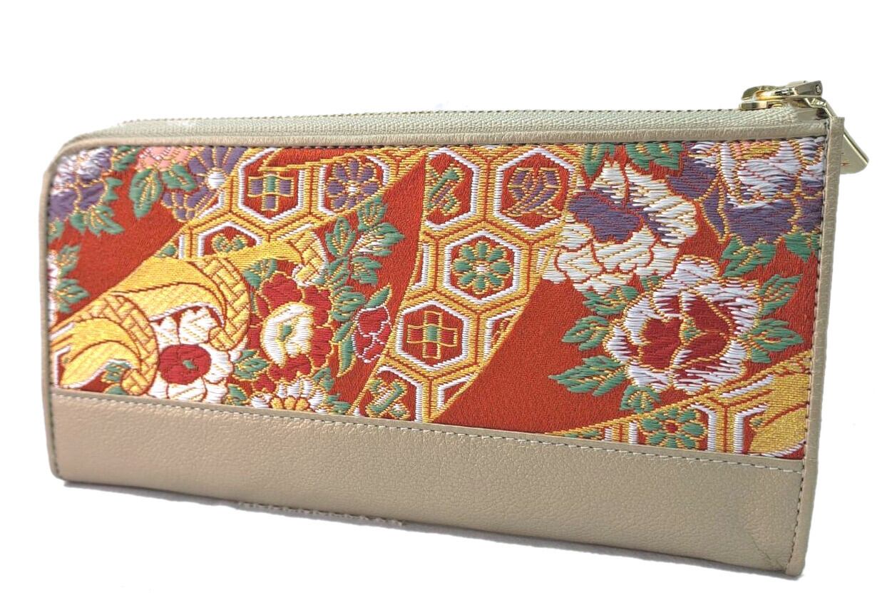 強い印象を与える金襴の柄とのバランスを整え、高級感を与え、和装だけでなく洋装でも使えるお財布に昇華しました。