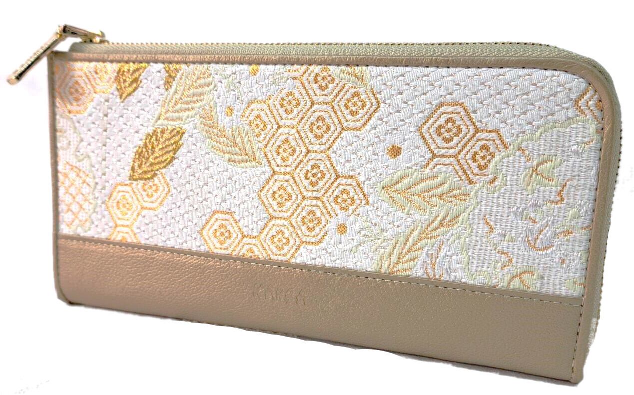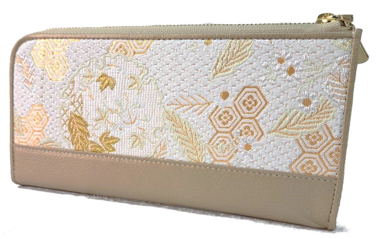 強い印象を与える金襴の柄とのバランスを整え、高級感を与え、和装だけでなく洋装でも使えるお財布に昇華しました。