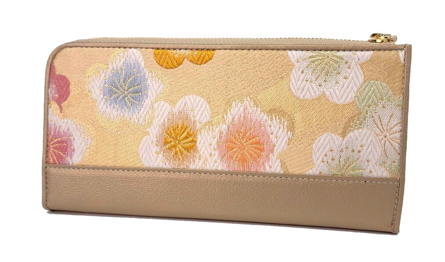 強い印象を与える金襴の柄とのバランスを整え、高級感を与え、和装だけでなく洋装でも使えるお財布に昇華しました。